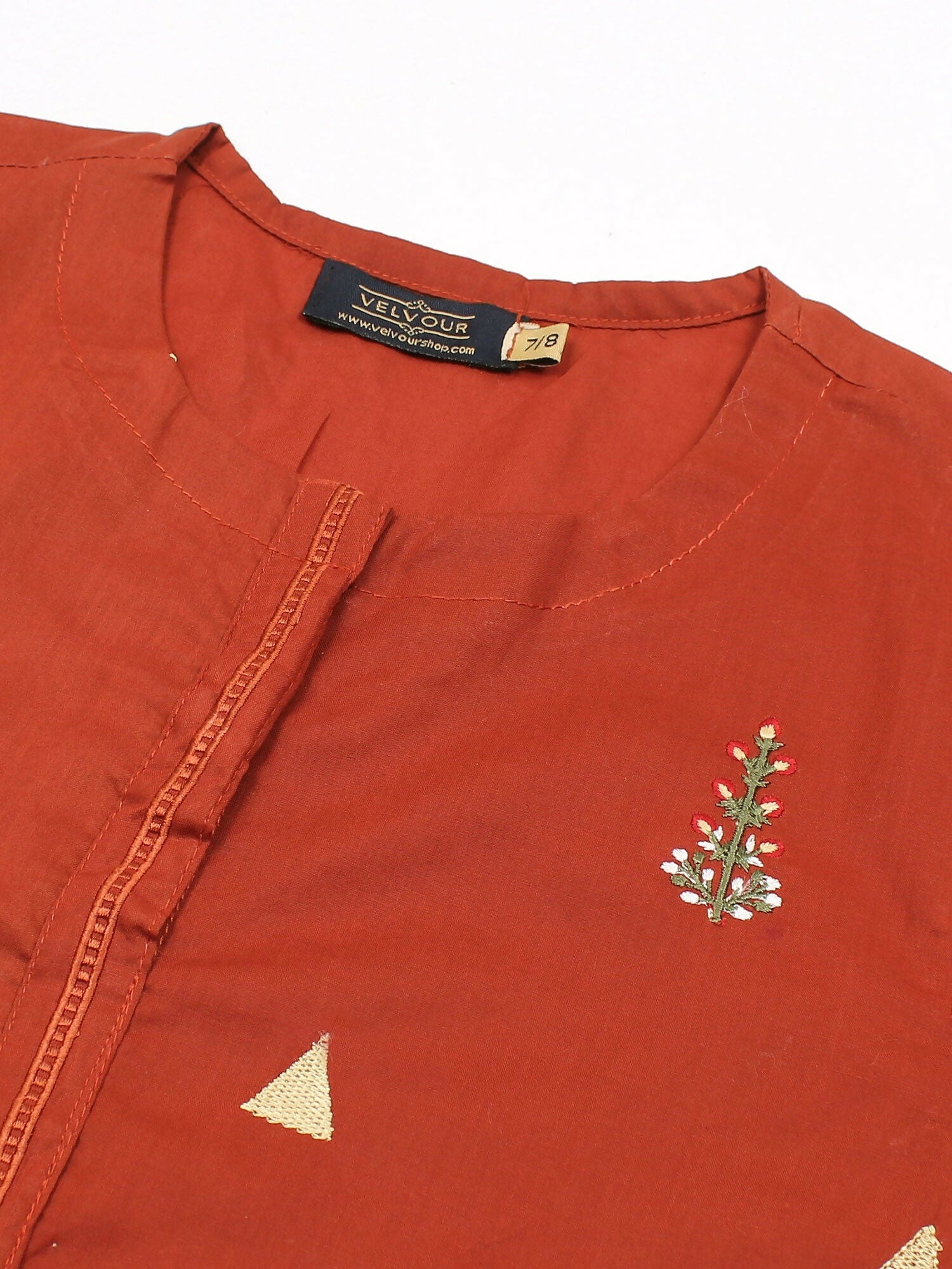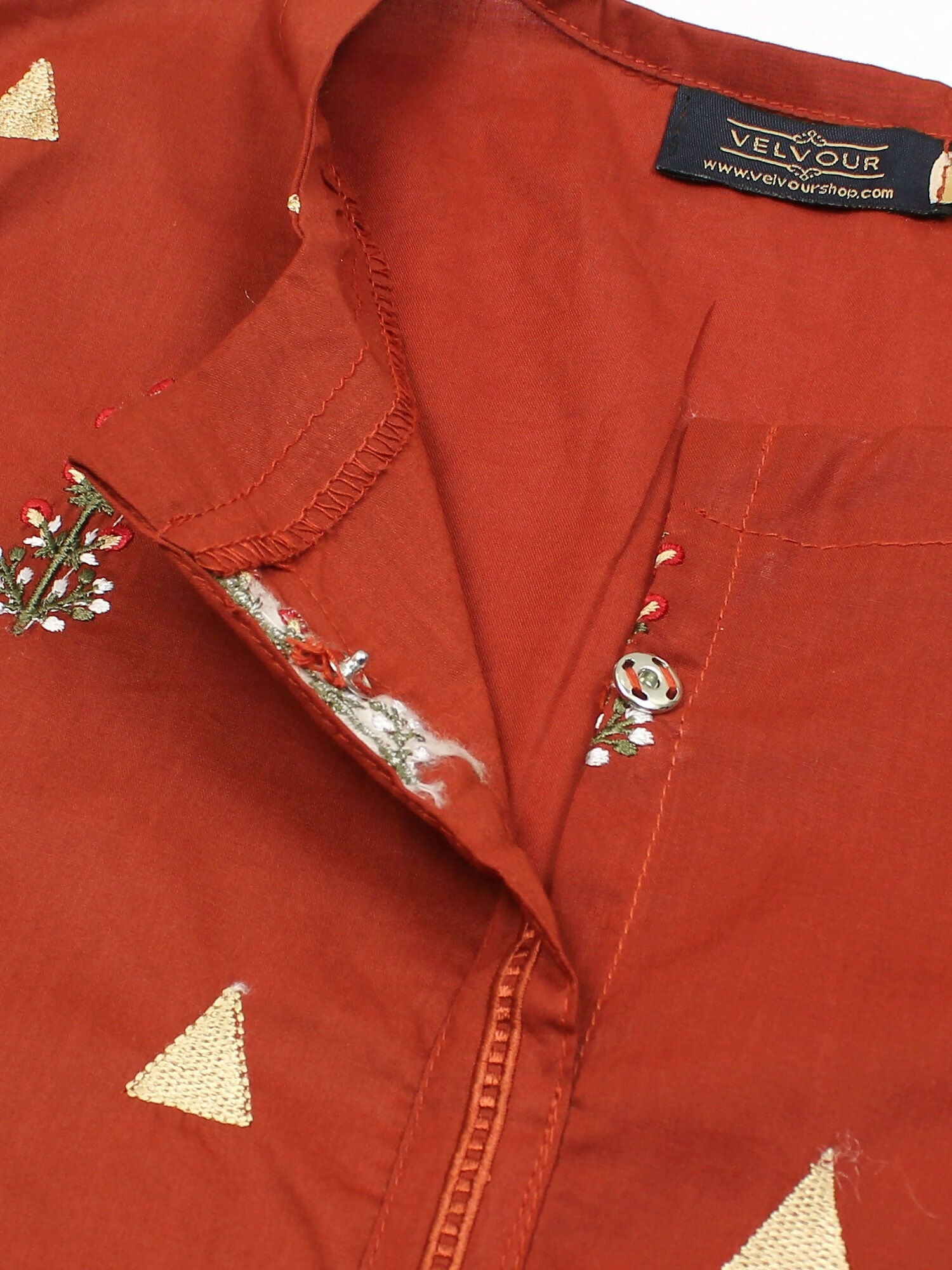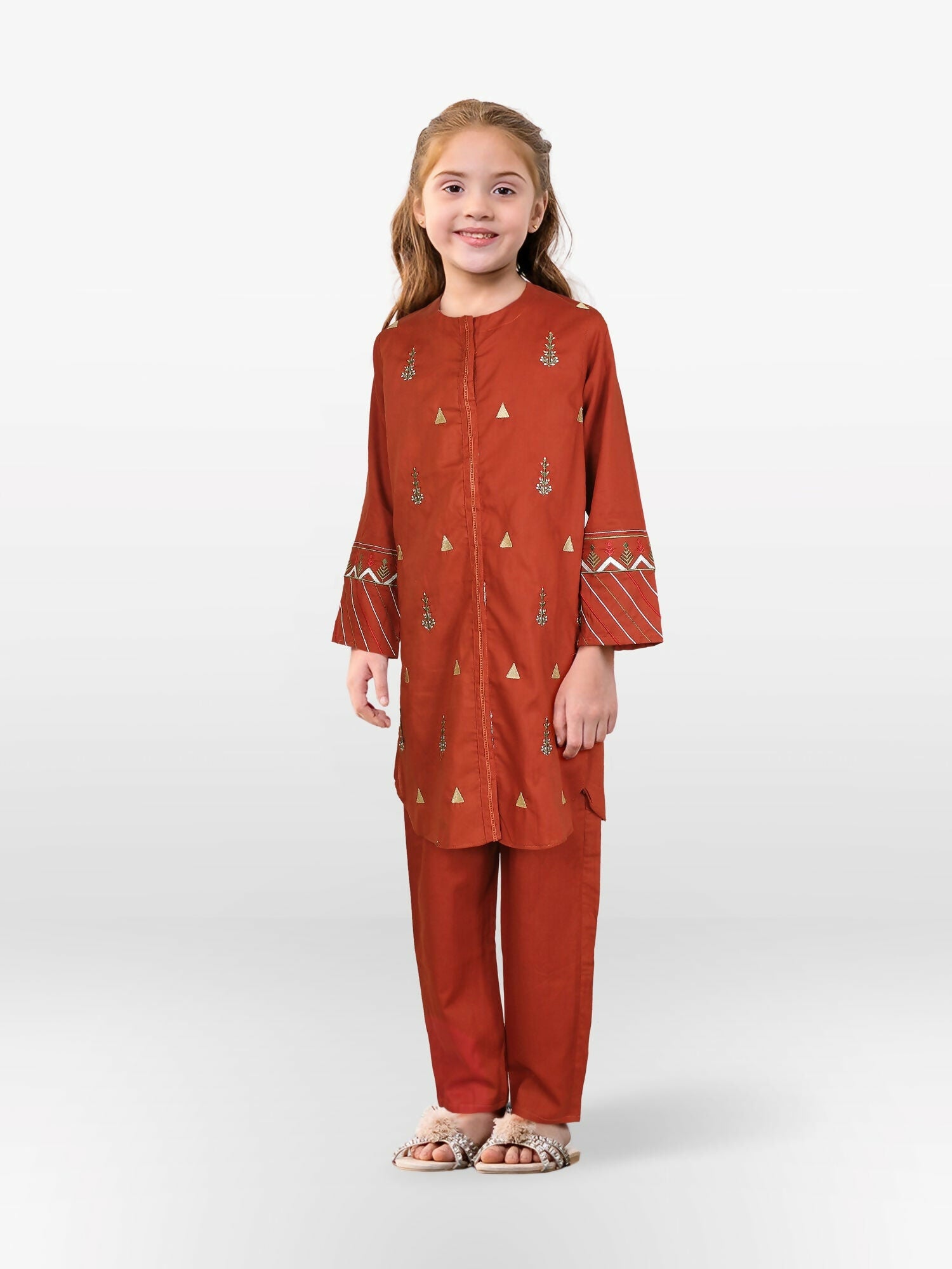 Velvour Girls Cotton Embroidered Stitched 2-Piece Suit-VG101-C