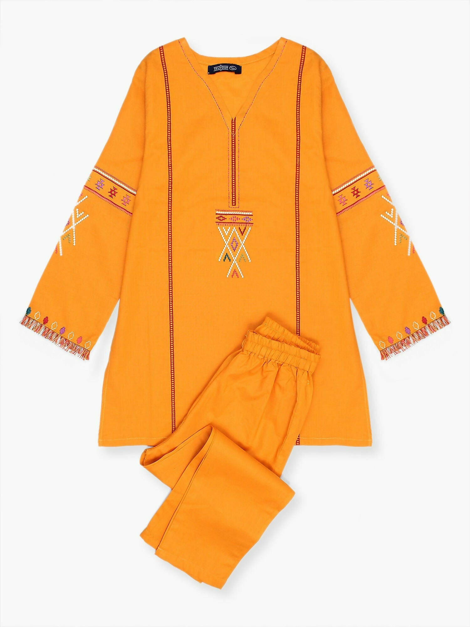 Velvour Girls Cotton Embroidered Stitched 2-Piece Suit-VG106-A