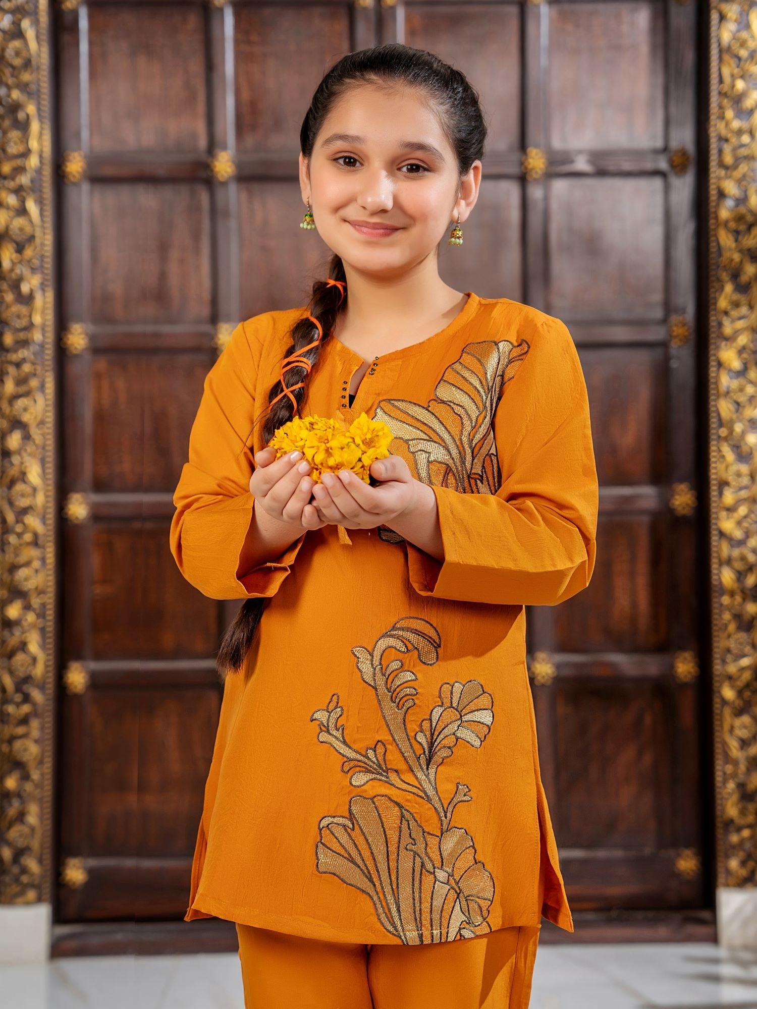 Velvour Girls Cotton Embroidered Stitched 2-Piece Suit-VG130-B