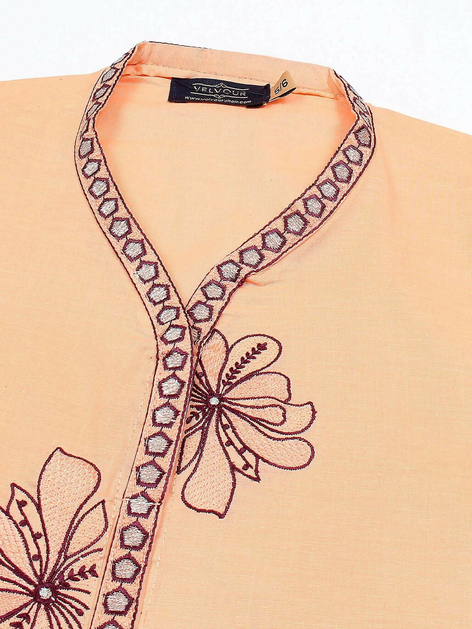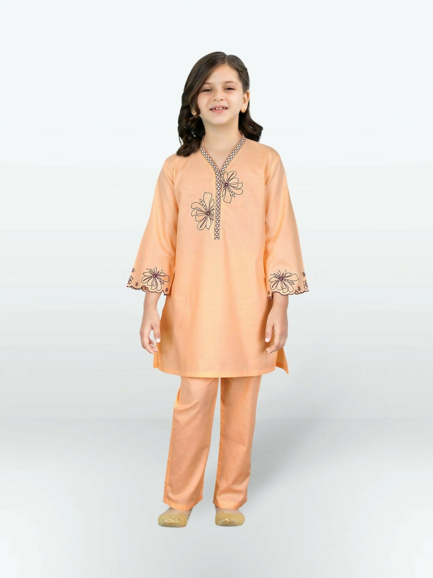 Velvour Girls Cotton Embroidered Stitched 2-Piece Suit-VG131-A