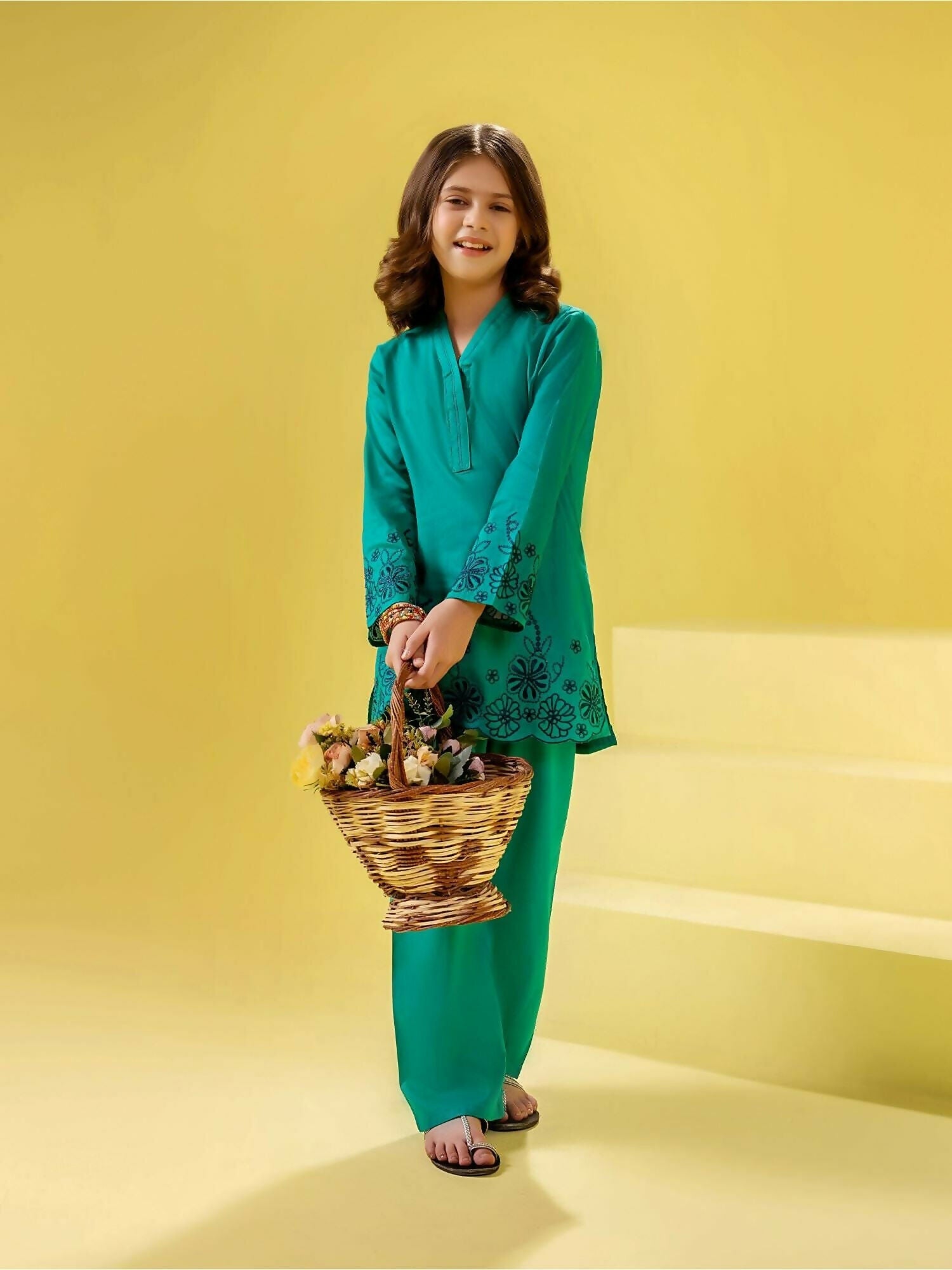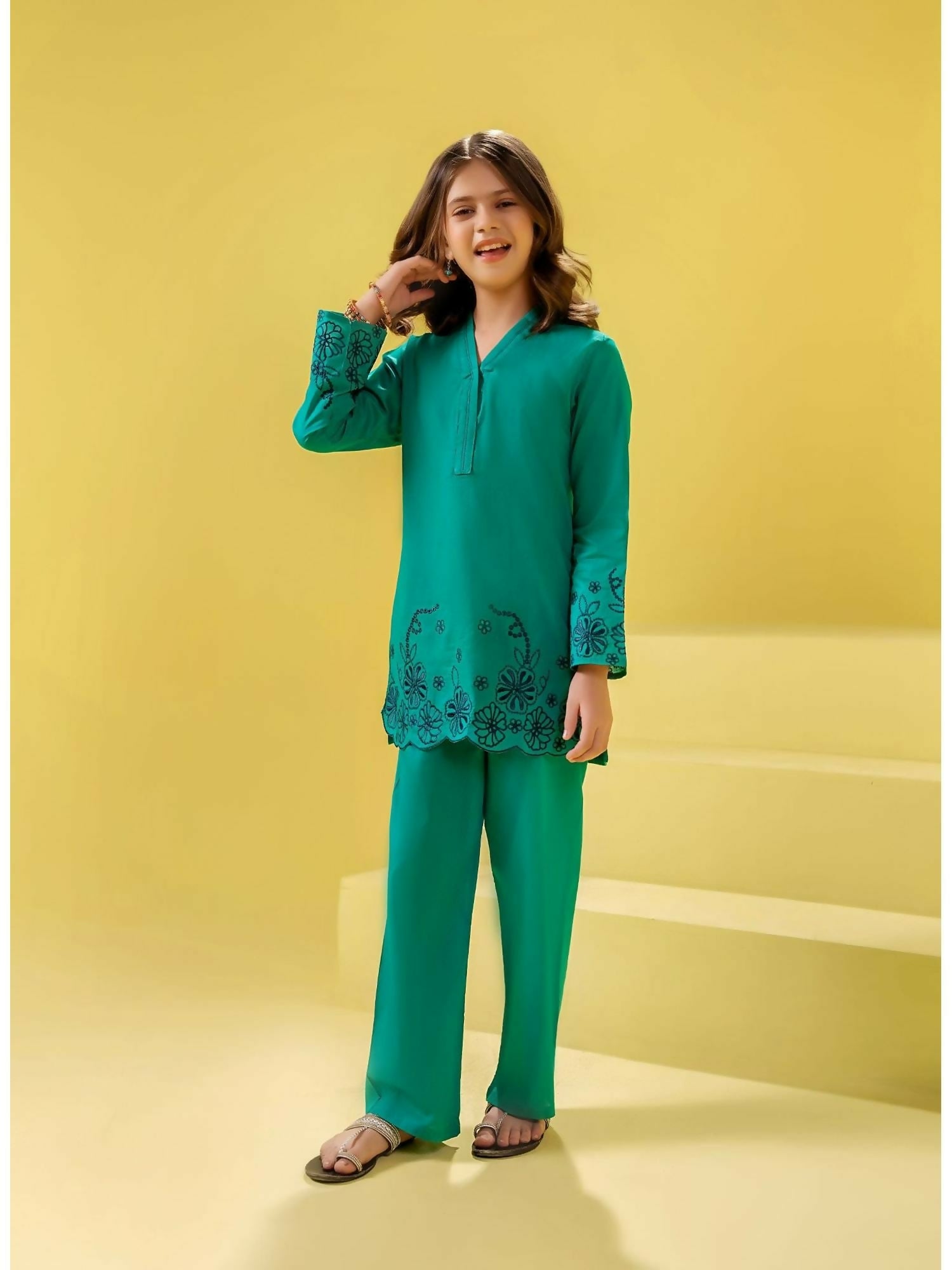 Velvour Girls Cotton Embroidered Stitched 2-Piece Suit-VG155-A