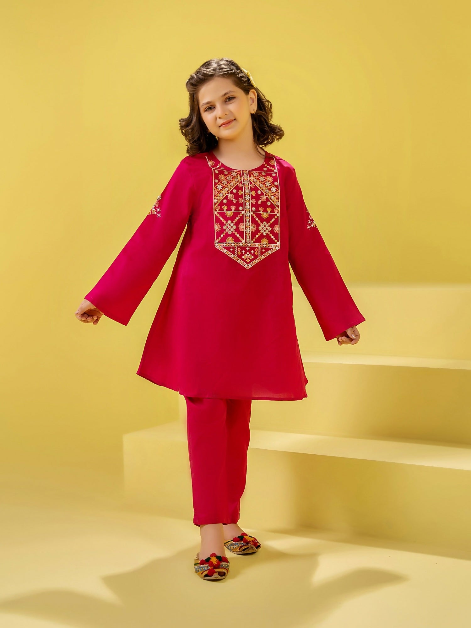 Velvour Girls Cotton Embroidered Stitched 2-Piece Suit-VG159-A