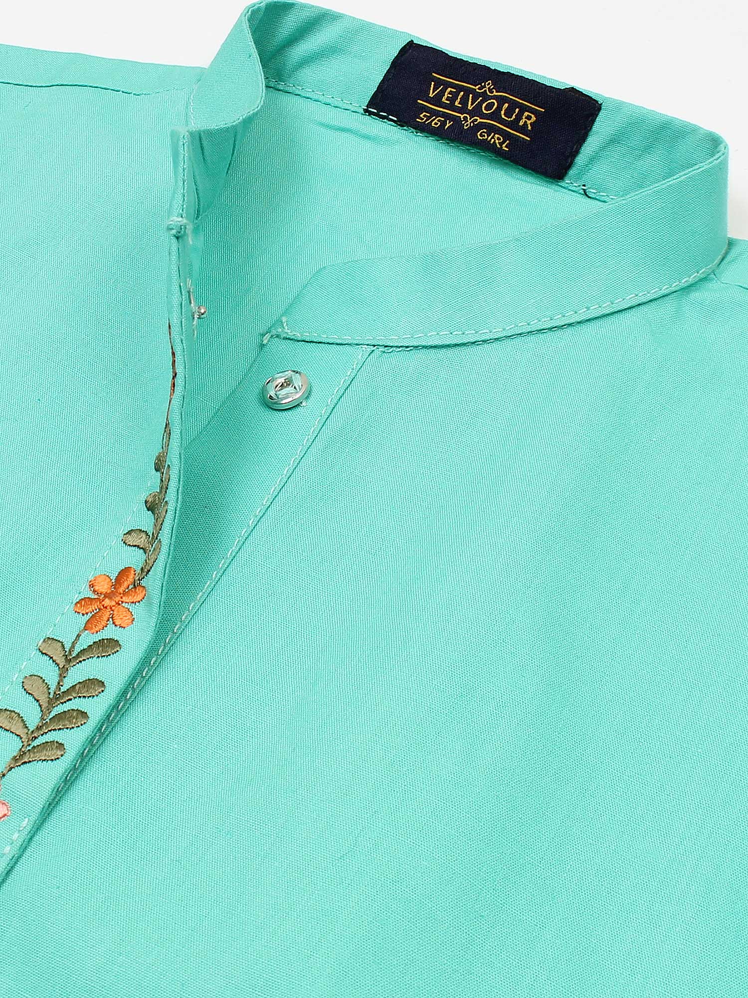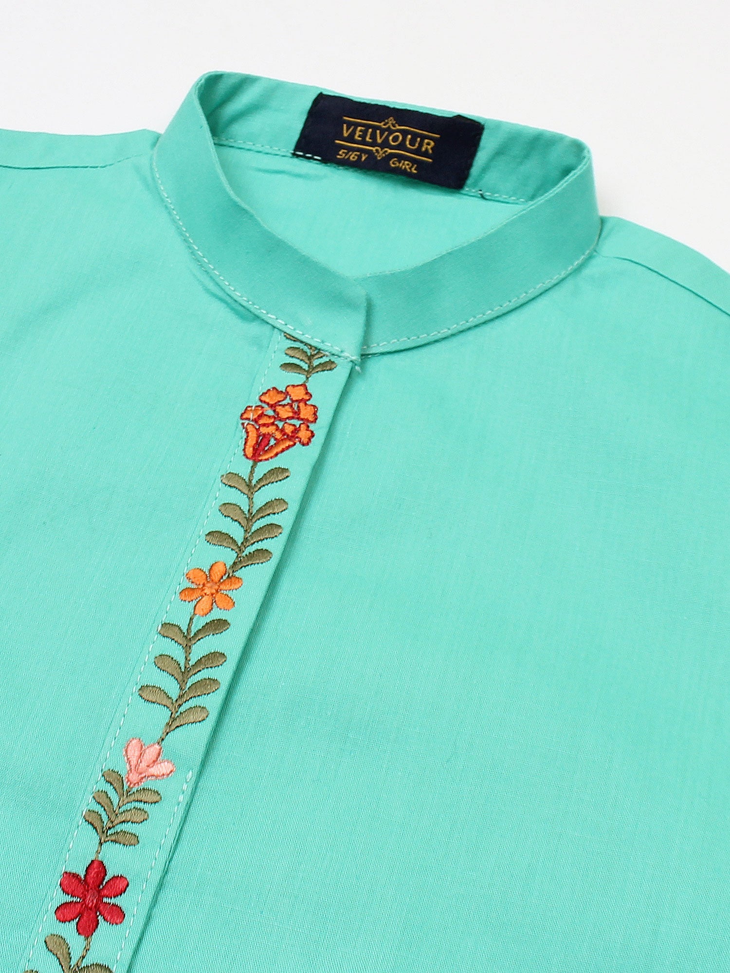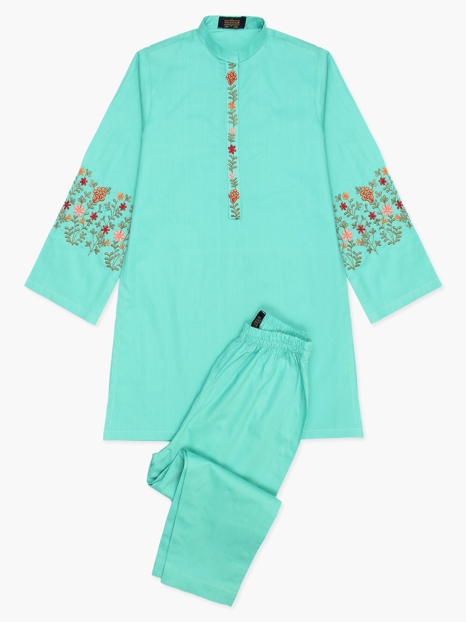 Velvour Girls Cotton Embroidered Stitched 2-Piece Suit-VG91-A