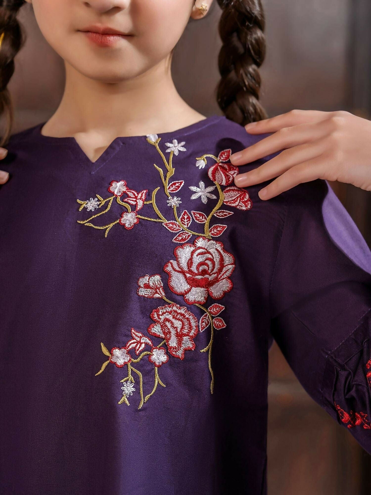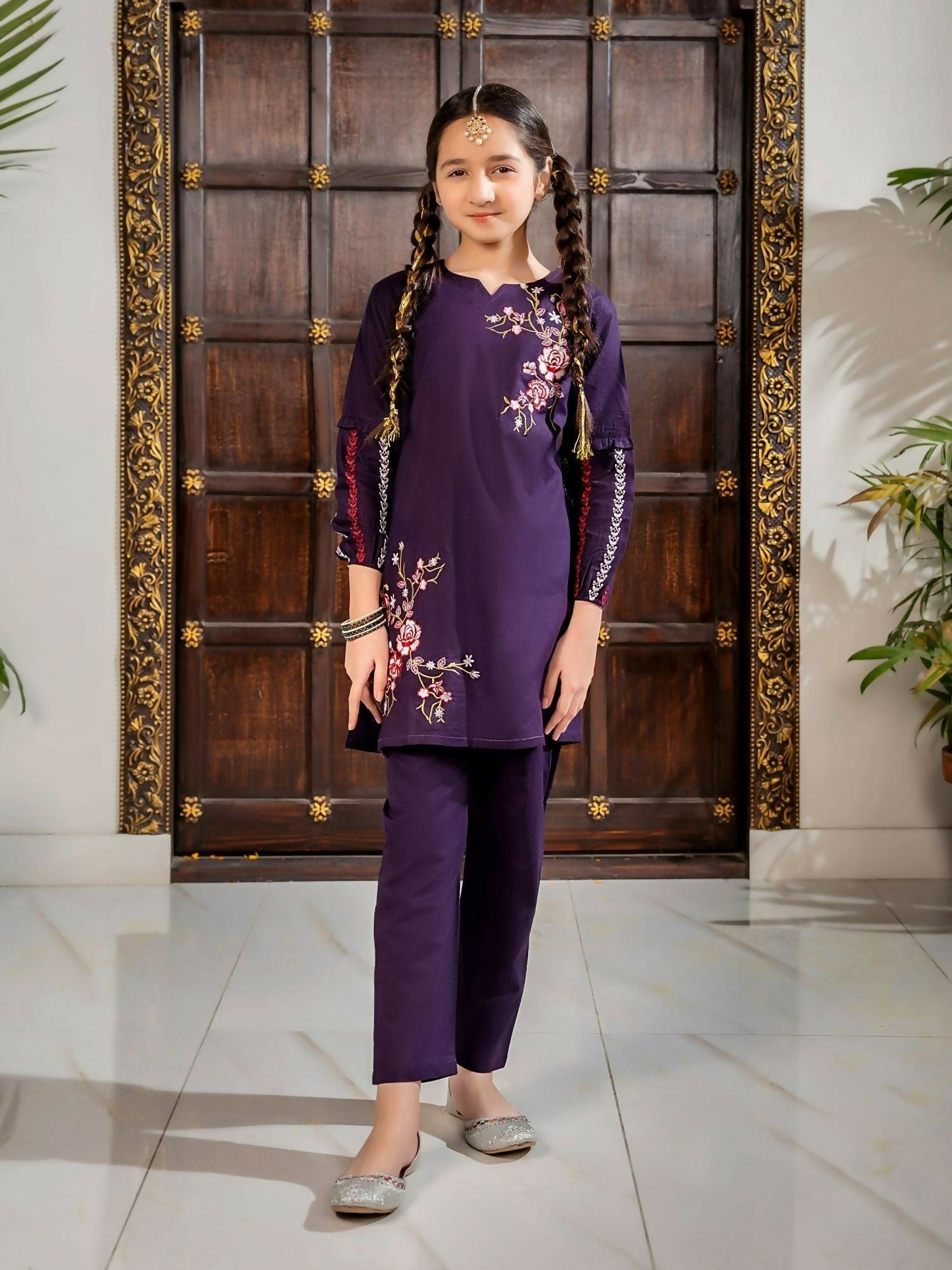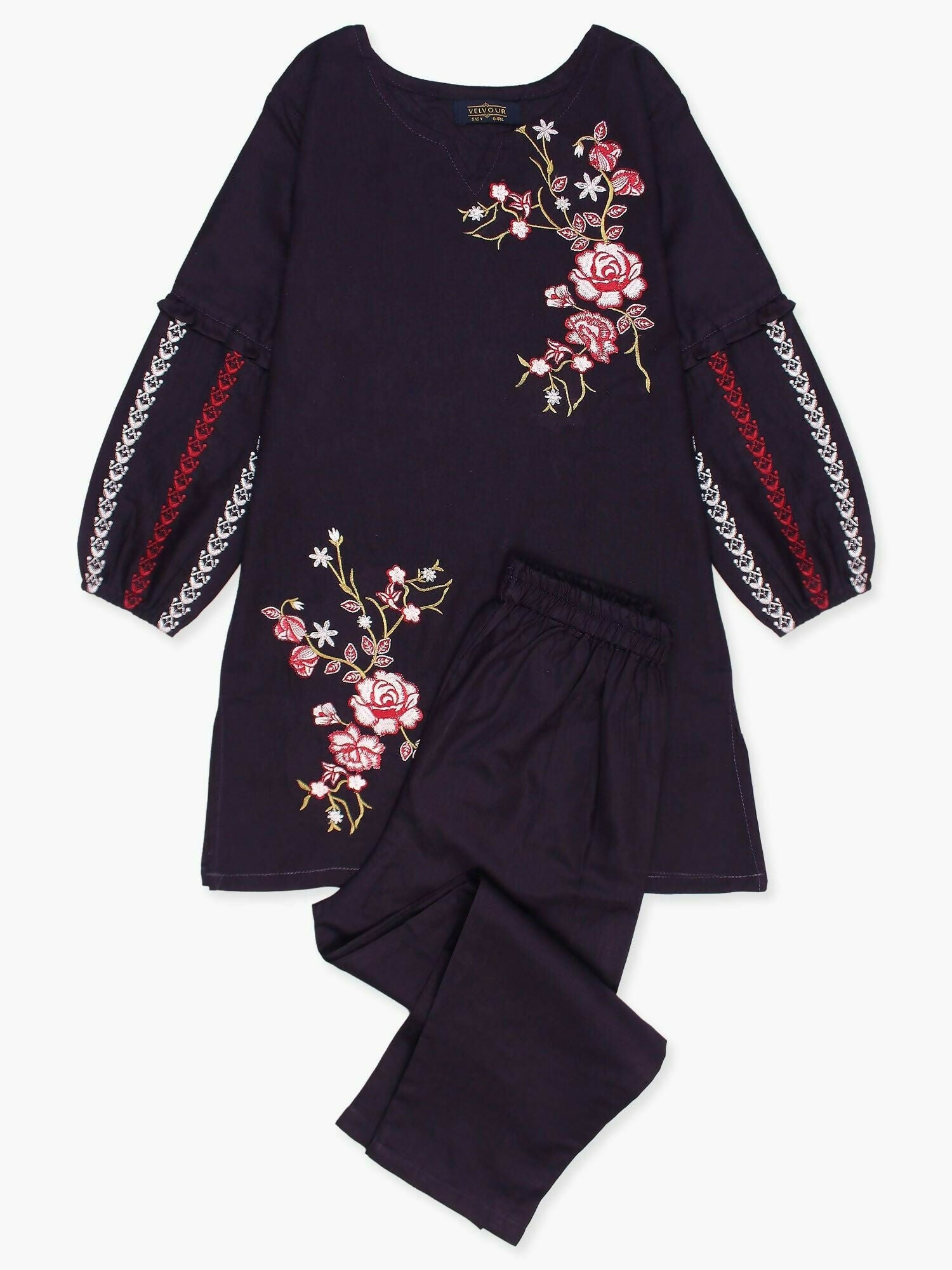 Velvour Girls Cotton Embroidered Stitched 2-Piece Suit-VG97-A