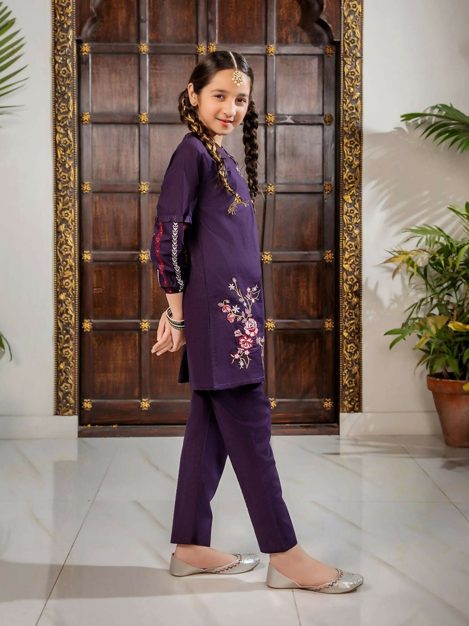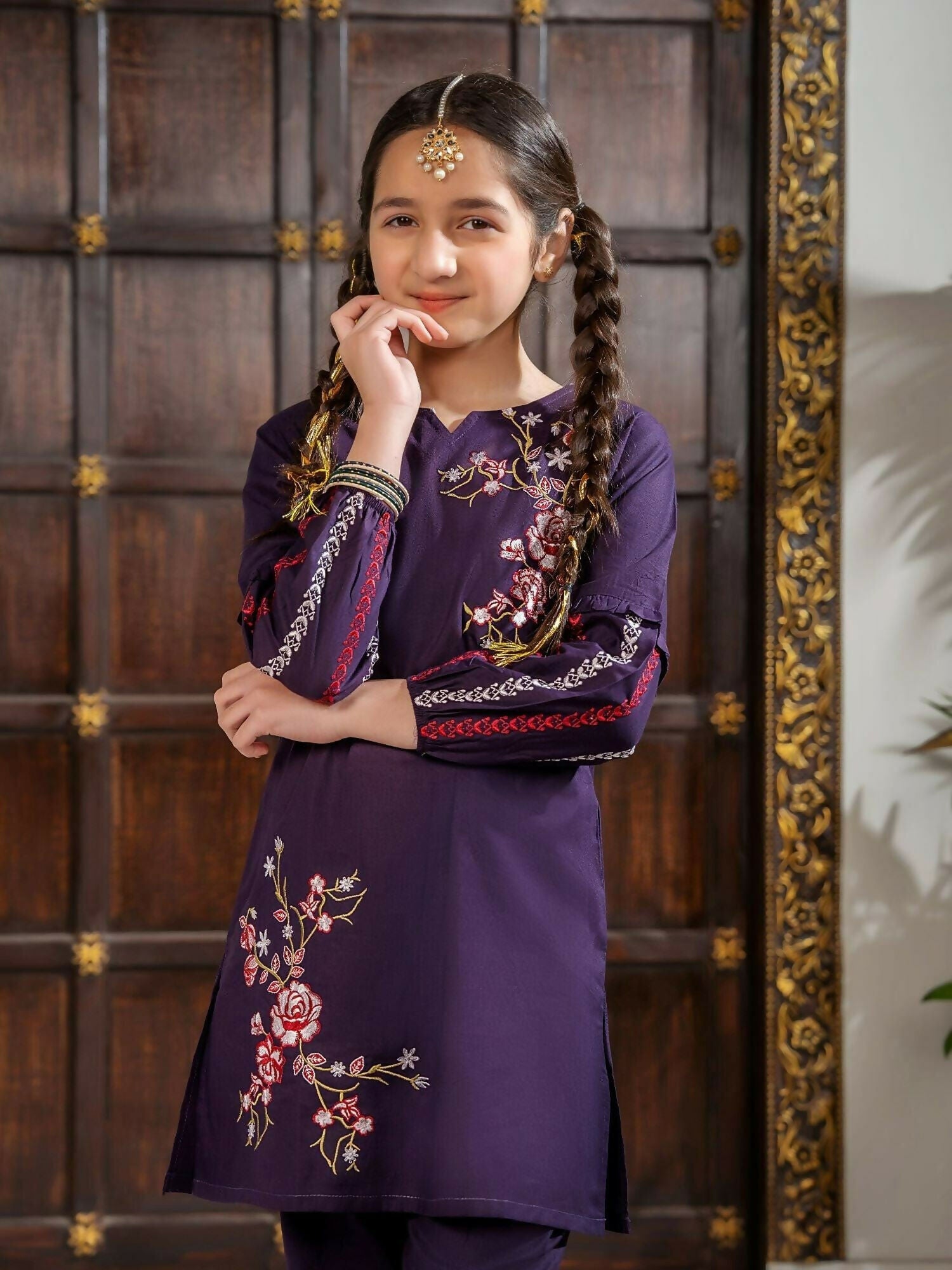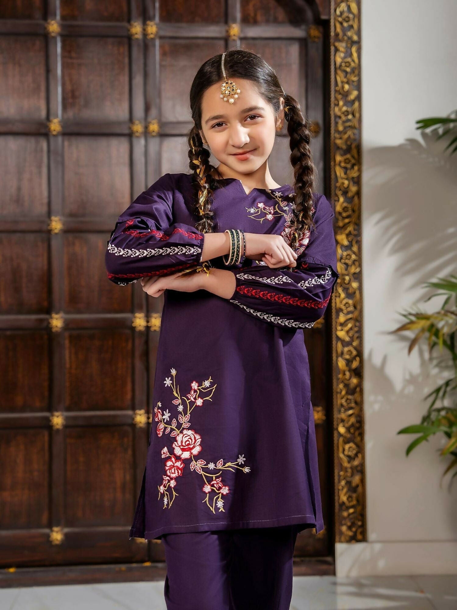 Velvour Girls Cotton Embroidered Stitched 2-Piece Suit-VG97-A