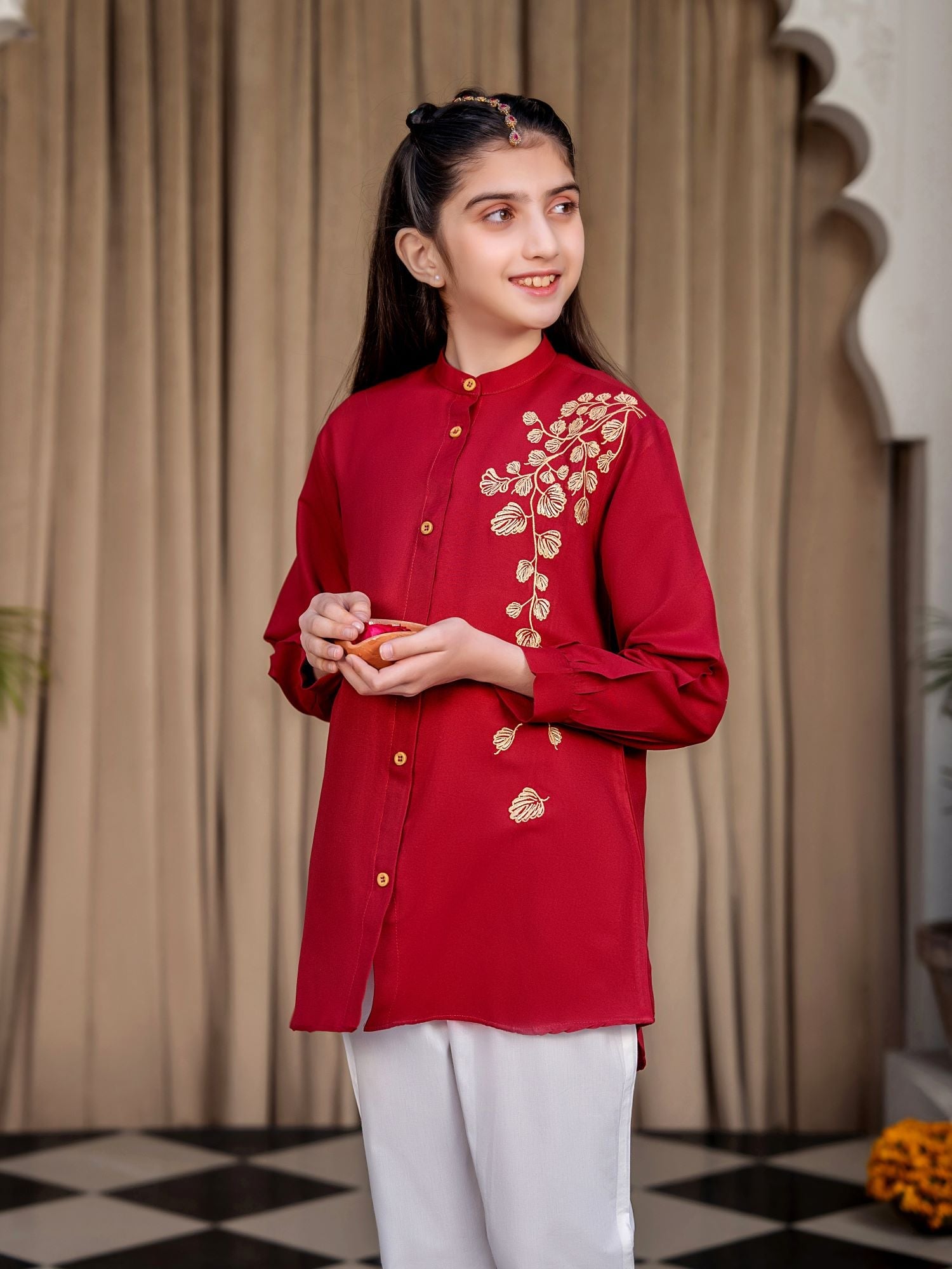 Velvour Girls Cotton Embroidered Stitched Tunic-VG120-C