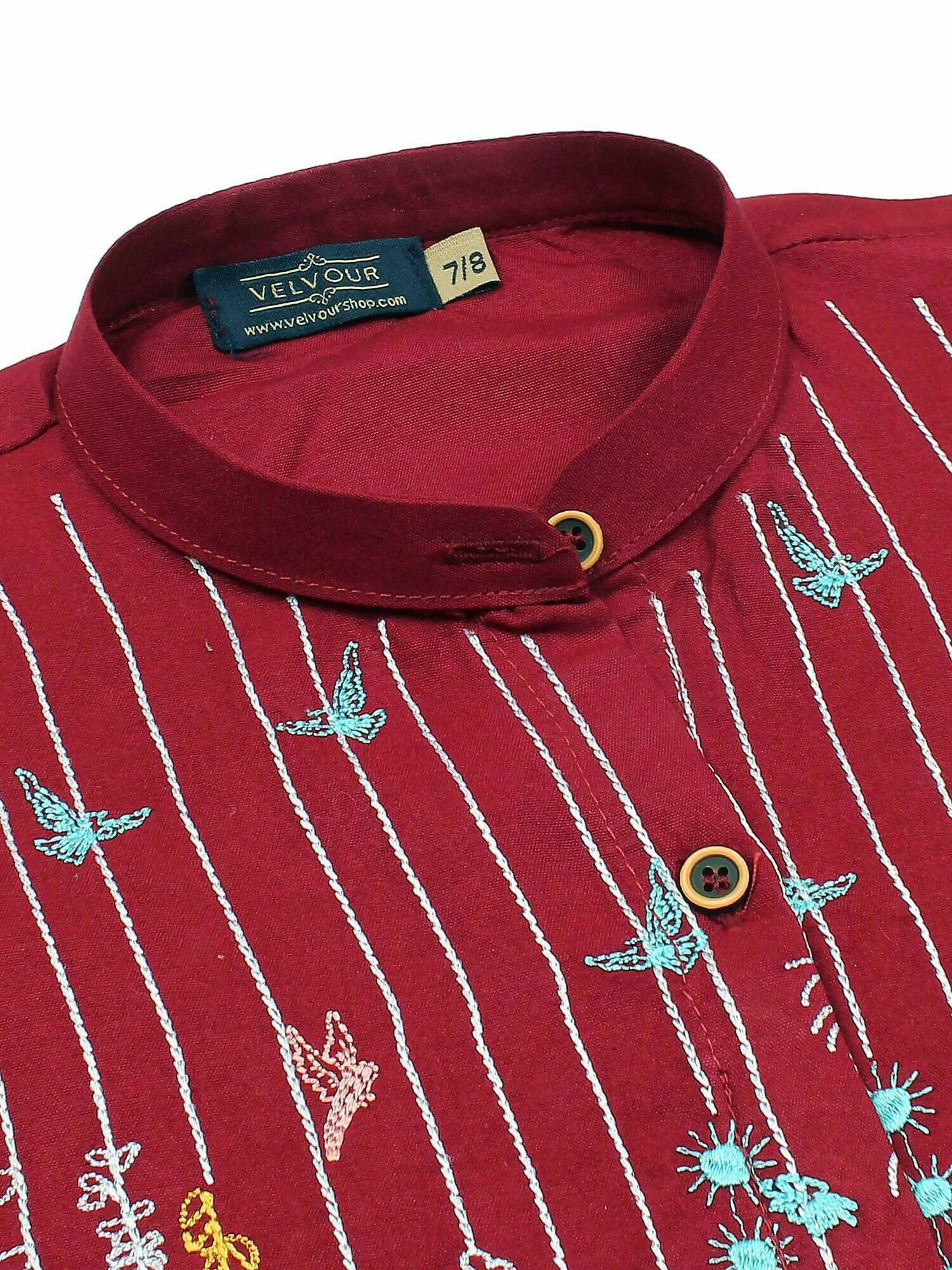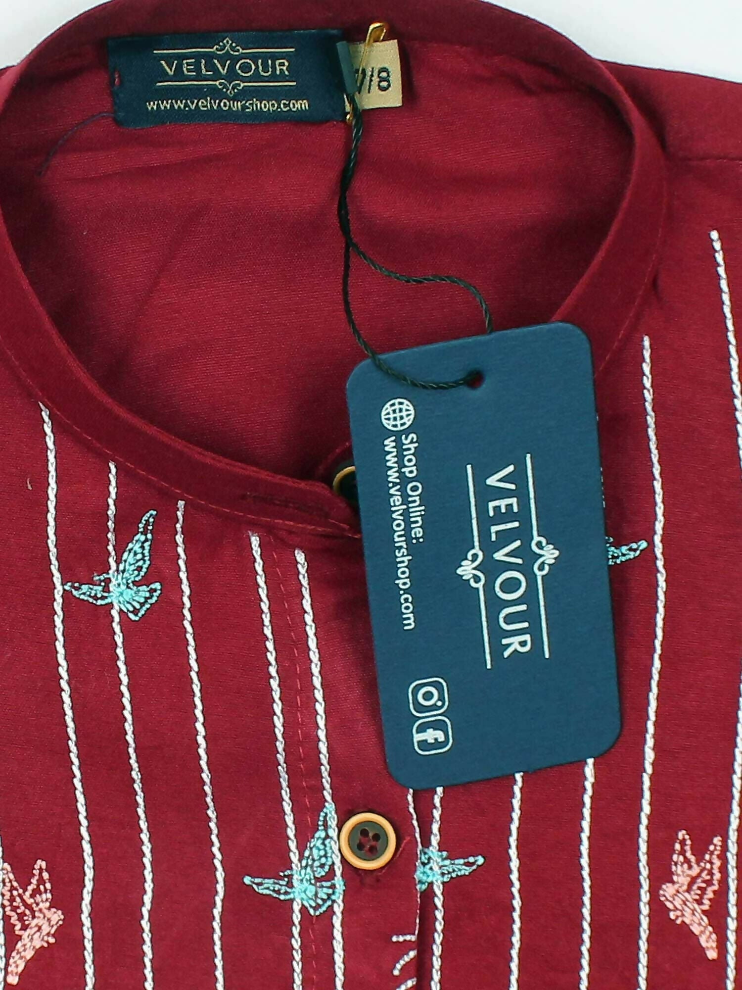 Velvour Girls Cotton Embroidered Stitched Tunic-VG122-C