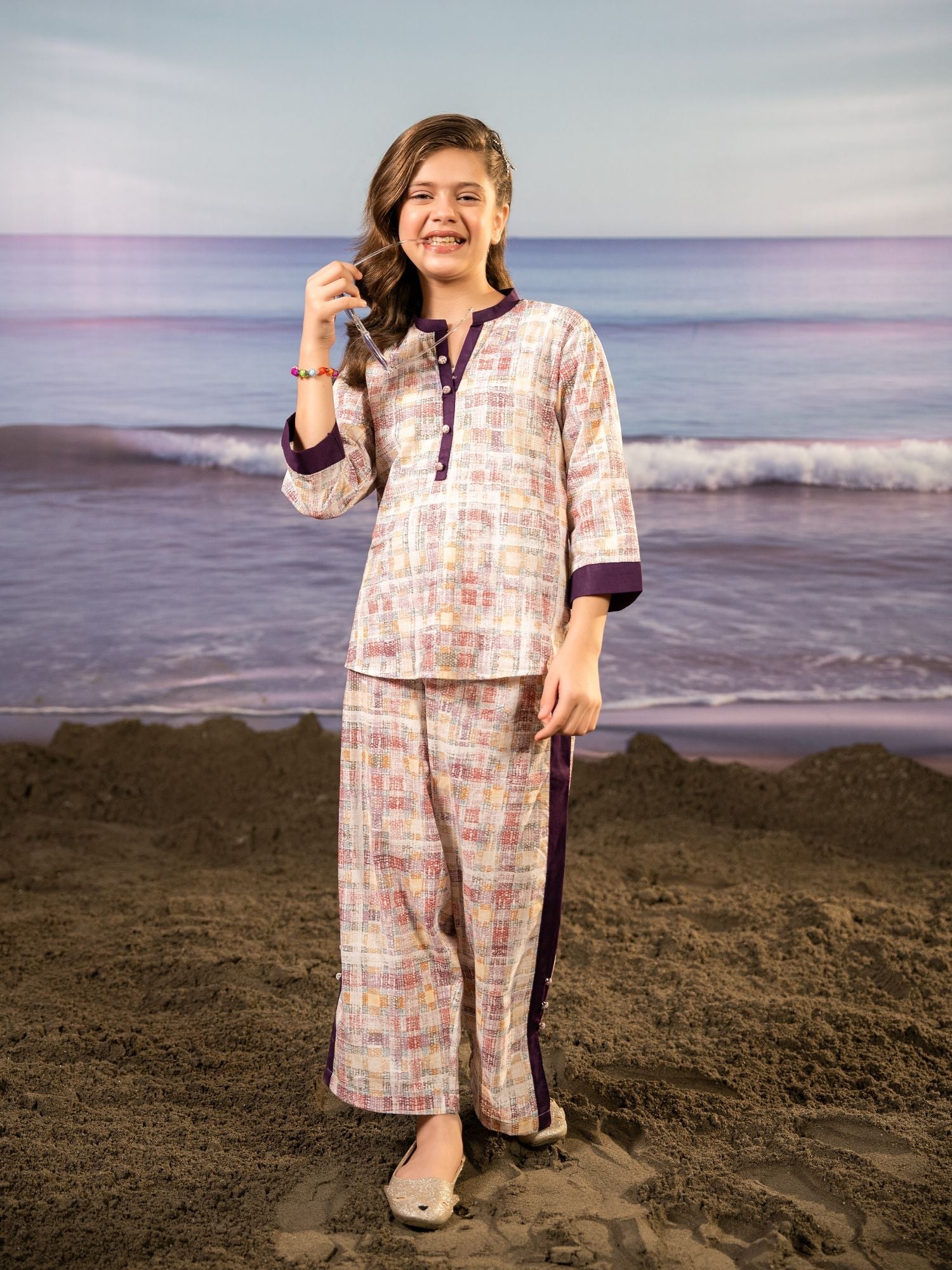 Velvour Girls Cotton Printed Co-Ord Set-VG167-B