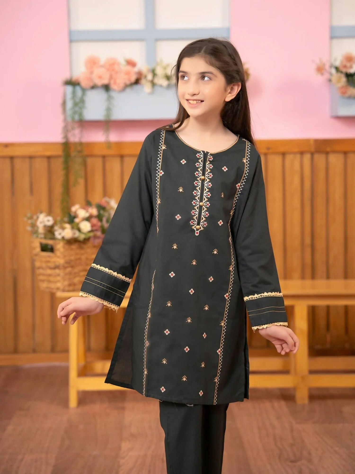 Velvour Girls Viscose Embroidered Stitched 2-Piece-Suit-VG87-B