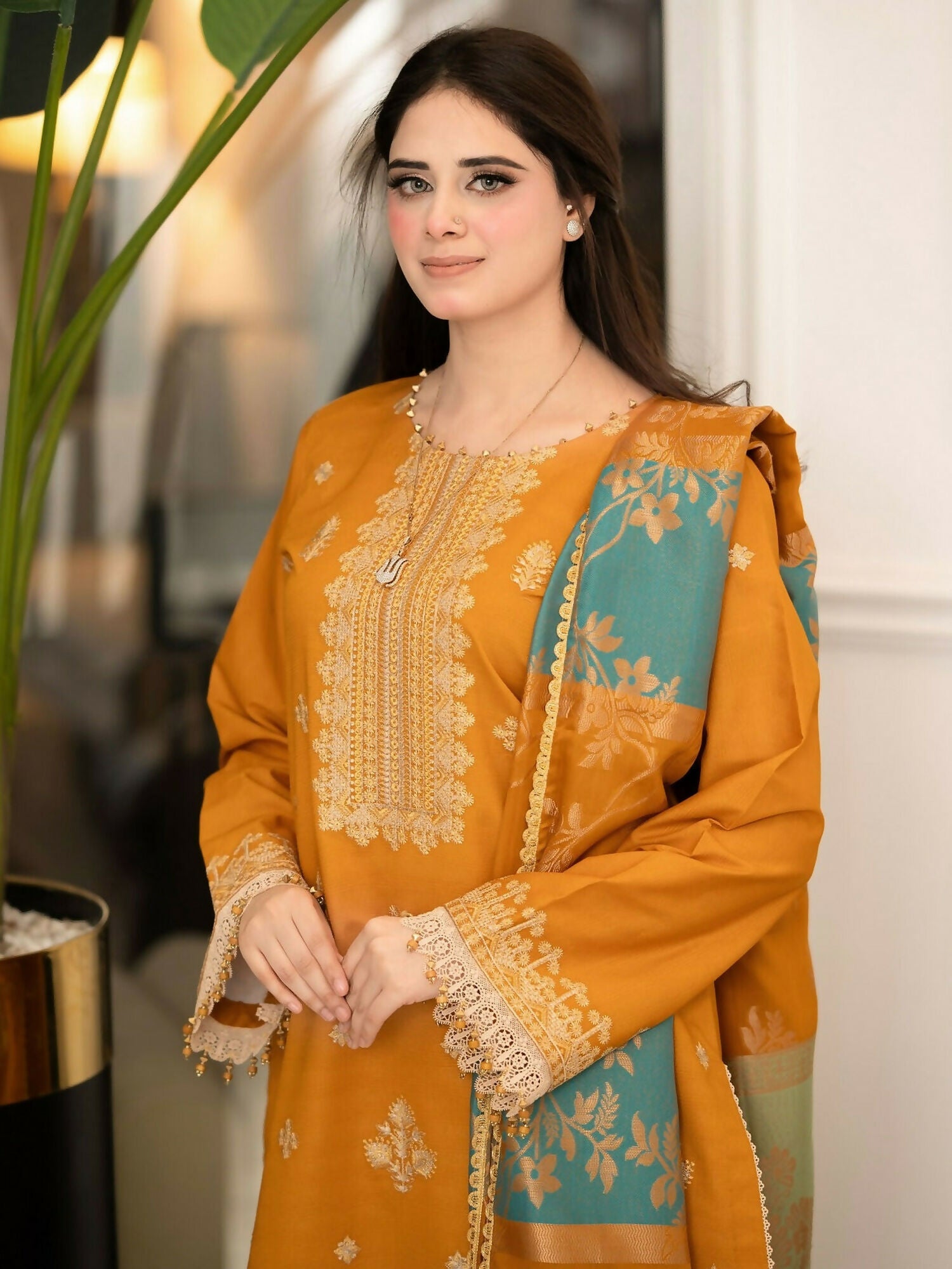 Zeephire Dhanak Embroidered Stitched 3-Piece Suit-Ifra